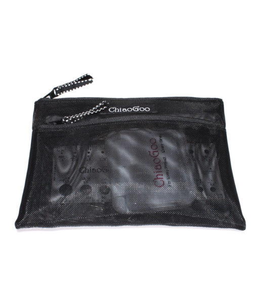 It all comes in a compact, 2-pocket, black mesh pouch that fits into our current interchangeable case!