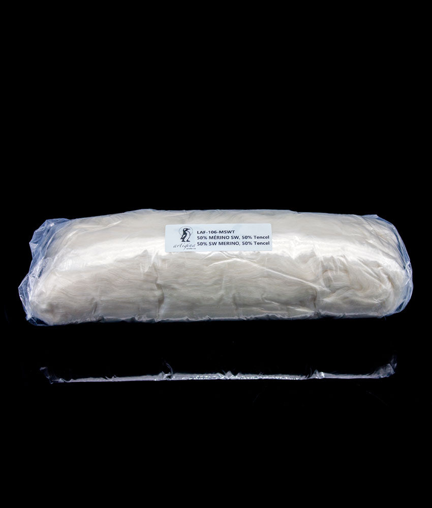 Notre laine à filer Mérino superwash et Tencel est une fibre luxueuse qui combine douceur, fluidité et brillance. Grâce au 50 % de Mérino superwash, la fibre se file facilement et offre un toucher moelleux. Le 50 % de Tencel ajoute un éclat élégant, une grande résistance et une belle définition aux fils que vous créerez. Préparée en ruban, cette fibre glisse naturellement entre les doigts et convient autant aux débutantes qu’aux fileuses expérimentées.