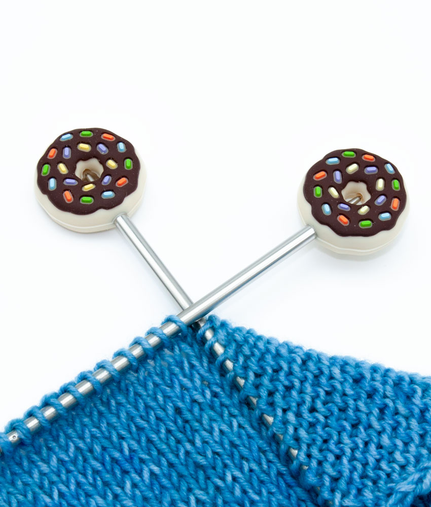 Protecteurs de pointe souples Artigina pour les extrémités des aiguilles à tricoter. En plus de protéger les pointes, les protecteurs permettent aux mailles de rester en place même dans votre sac de rangement. L’ensemble comprend 2 protecteurs en forme de beigne.