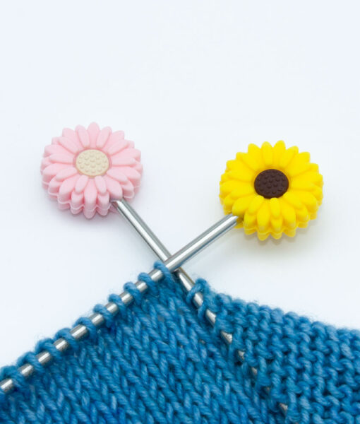 Protecteurs de pointe souples Artigina pour les extrémités des aiguilles à tricoter. En plus de protéger les pointes, les protecteurs permettent aux mailles de rester en place même dans votre sac de rangement. L’ensemble comprend 3 protecteurs en forme de tournesol.